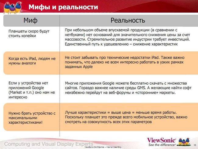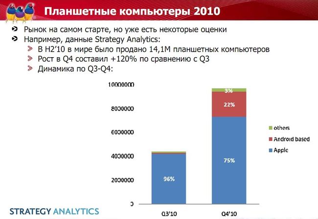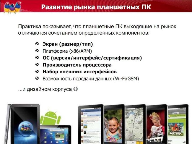Интересный слайд, он суммирует основные отличия планшетов между собой. Вот только мне кажется, что отличий будет с каждым месяцем становиться все меньше.