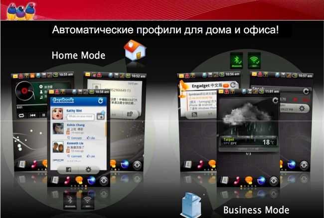 Т. е. вы можете настроить телефон так, чтобы он показывал разные приложения и виджеты в зависимости от того, дома вы или на работе. А третий набор можно создать, например, для командировки.