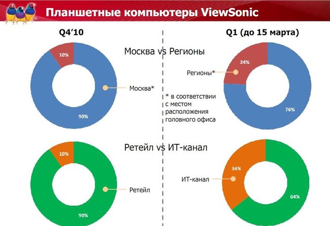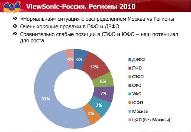 Ну и последний интересный график (тоже в виде «бубликов» — вообще, количество бубликов в презентации впечатляет) — анализ продаж планшетов Viewsonic.