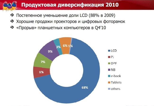 Очень интересная ситуация складывается с планшетным направлением. Хотя планшеты Viewsonic вышли на рынок только в четвертом квартале 2010 года, сейчас их доля в бизнесе компании составляет уже порядка 6%, т. е. это направление очень перспективно.