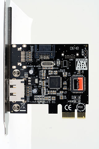 Выбранный интерфейс говорит о том, что в основном компания заботилась о пользователях ноутбуков, благо им как раз портативные винчестеры на пластинах 2.5″ и менее интересны (3.5″ винчестеры имеют более высокую производительность и емкость, причем каждый гигабайт в их случае обходится существенно дешевле, но подходят только для стационарного использования). Да и сложнее в ноутбуке получить поддержку eSATA — можно адаптер купить и отдельно, но его надо искать. В самых современных моделях такие порты встречаются штатно, но ведь срок жизни ноутбука обычно больше, чем у настольного компьютера, так что менять его только ради этого... Наличие контроллера в комплекте с внешним модулем вполне можно считать его плюсом. А что данная карта собой представляет конкретно — подробно поговорим в следующей части тестирования.