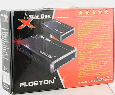 Сегодня на повестке дня первый из модулей нового поколения. Относится он к линейке StarBox уже хорошо знакомой нам компании Floston. Полное название достаточно громоздко, зато позволяет сразу разобраться с функциональностью устройства: «3.5″ SATA/PATA to eSATA/USB 2.0 HDD Enclosure». Т.е. это корпус для 3.5″ винчестеров с интерфейсом SATA или PATA, позволяющий превращать оные в ВЖД с интерфейсом USB 2.0 или eSATA. Все четко, но слишком уж невыговариваемо :) Впрочем, есть информация и о наличии у устройства менее понятного, зато короткого и запоминающегося названия модели: SE-EUS1.
