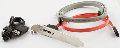 Разумеется, в комплект входит и все необходимое «кабельное хозяйство», которое уже для каждой модели свое. Причем компанию можно похвалить за то, что комплект даже чуть шире необходимого. Посмотрим, что получается в нашем случае. Во-первых, стандартный USB-кабель с разъемом типа mini-B — обязательный для всех моделей (кроме VPA2-25011) компонент. Во-вторых, еще один USB-кабель, позволяющий управиться со случаями, когда питания с одного порта USB не хватает. С одной стороны — все тот же mini-B, с другой же кабель раздваивается на обычную вилку А-типа и чуть более сложную конструкцию: вилка+розетка. Соответственно, подключается к двум портам USB, позволяя ко второму параллельно подключать и что-нибудь низкопотребляющее, типа мыши или клавиатуры. Поскольку через разъем eSATA подводить питание невозможно, в комплекте двух соответствующих моделей есть и третий кабель — для подвода питания с USB-порта на «круглый» разъем. Специфическими для них же являются еще два элемента комплекта поставки. Четвертый — обычный eSATA-кабель, и пятый — «выкидыш» на заднюю стенку компьютера, позволяющий превратить любой свободный SATA-порт на материнской плате в eSATA. С учетом того, что пока разъемы такого типа имеются далеко не на всех материнских платах, а современные чипсеты поддерживают по четыре и больше портов SATA (большинство из которых в типичных системах остаются незанятыми), да и все необходимые внешнему накопителю «фишки», типа «горячего подключения» тоже, последний компонент будет весьма полезным. Конечно, его можно приобрести отдельно, да и eSATA-адаптер с интерфейсом PCI-E ныне стоит менее 20 долларов, но проявленная забота о пользователе лишней не оказывается никогда :)