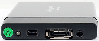 Общие размеры конструкции составляют 129,8×80×15,7 мм. Это достаточно далеко от рекордных значений, но и слишком большим накопитель не назовешь — разумный средний уровень. Что касается цветовой гаммы, то в продаже были обнаружены два практически универсальных варианта — черный и серебристый. Для индикации активности устройства используется светодиод голубого свечения — в разных моделях просто чуть по-разному расположен. Также общим элементом является обычный «круглый» разъем для внешнего блока питания, что позволяет получать энергию не только от компьютера (если таковая необходимость возникнет).