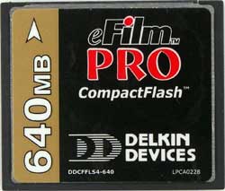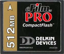 Во второй части нашего тестирования мы познакомились с CompactFlash от этого именитого производителя. Карта емкостью 128 Мбайт вела себя превосходно, а вот модель на 512 Мбайт явно подкачала из-за использования достаточно старого контроллера. В Delkin не стали модернизировать существующие карты, а просто выпустили серию eFilm Pro, включив в нее карты различного объема. Их упаковка стала совсем стандартной: исчез 80 мм CD с софтом «на 150 баксов», зато на вкладыше обещано, что карты этой серии работают чуть ли не как молния. Это-то мы и проверим.
