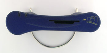 Взглянув на эту фотографию, становится понятной роль металлической скобки — хоть устройство и имеет достаточно большие габариты, но на столе оно много места не займет, поскольку устанавливается вертикально. Сверху как раз виден универсальный 4-in-1 слот (для всего, кроме CompactFlash) и два световых индикатора активности (по одному для каждого слота), на одном торце устройства располагается слот CompactFlash Type II, на другом — разъем FireWire. Очень компактно и удобно. Замечу, что использование стандартного отсоединяемого кабеля выгодно отличает устройство от многих конкурентов и особенно удобно, если у вас есть несколько FireWire-устройств, но всего один порт.