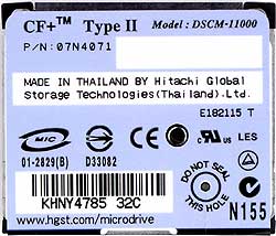 Совсем недавно это миниатюрное устройство рассматривали как чудо техники в области производства винчестеров и чуть ли не прочили в могильщики для карт флэш-памяти. В самом деле: благодаря стараниям IBM в стандартный размер CompactFlash Type II удалось поместить настоящий жесткий диск. Пусть миниатюризация далась недешево, но стоимость хранения мегабайта информации оказалась на момент выпуска в два-три раза ниже, чем на флэш-картах. Таким образом, уже в прошлом году за приемлемые деньги можно было получить карточку объемом 1 Гбайт. Ну а ради этого очень многие готовы были простить накопителю все: и несколько меньшую надежность (микродрайвы нередко умирали просто упав из рук на пол), и некоторую громоздкость, и очень высокое (по сравнению с флэш) энергопотребление. В общем, рай да и только.