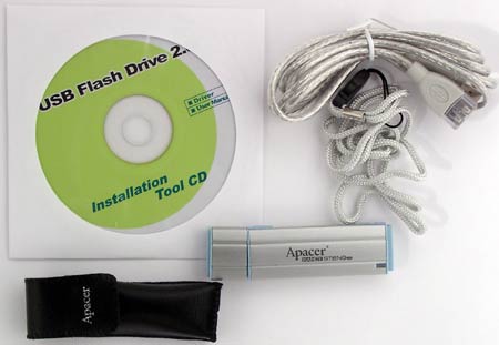 И комплект поставки все тот же самый: накопитель, шнурок для его ношения на шее, USB-удлинитель, CD, печатная инструкция, гарантийный талон.