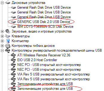 В списке устройств об Apacer ни слова — просто абстрактный диск USB 2.0.