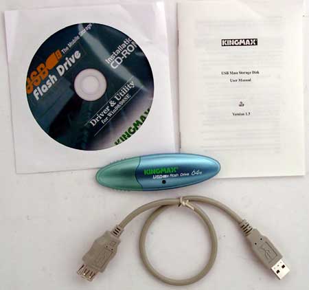 Комплект поставки похож на присутствующий в случае «старшего брата»: накопитель, USB-удлинитель (нужен лишь для удобства — воткнуть устройство куда угодно можно легко), колечко с карабинчиком и шнурок для ношения флэшдрайва на шее, инструкция, гарантийная карточка и CD с софтом и документацией. Правда, CD теперь тоже стал компактнее — 3.5″. Да и удлинитель красивее — серебристый металлик, а не блекло-серый (не удивлюсь, если окажется, что он экранирован и полностью совместим, таким образом, с USB 2.0 — приятный подарок от фирмы будет), и шнурок-ошейник такой же. Я, кстати, долго думал, что он мне напоминает, потом обнаружил на нем надпись «IRIVER» :) Все встало на свои места — точно такой же прилагается к плеерам iRiver iFP. Там он, правда, нужен как корове седло (плееры имеют достаточно большую массу), а вот флэшдрайв на нем носить удобно.