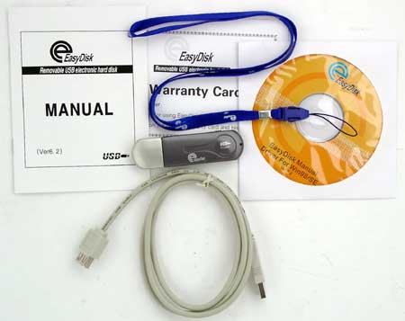 Несмотря на то, что удлинитель устройству не нужен, в комплекте он присутствует, причем, как и следовало ожидать, полностью совместимый с USB 2.0. Еще в комплекте имеется CD с драйверами для Windows 98 (вообще-то, если верить самим драйверам, то они для моста USB-IDE от NEC, но видать подходят), мощный шнурок для ношения накопителя на шее и кожаный чехольчик (последнему сильно не помешала бы клипса для крепления на пояс). Все это упаковано в прозрачный пластик, заметно потеснивший в последнее время картонные коробки.