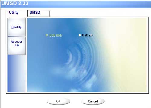 Переходим ко второй закладке, а именно Utility. Сразу видим, что устройство можно сделать загрузочным. Под Windows 98 возможен выбор, как с устройства будем загружаться: как с USB-винчестера или с USB-ZIP, в случае других ОС доступен лишь второй вариант. Способ сделать устройство загрузочным под Windows XP тоже был в конце-концов обнаружен, причем он похож и на соотвествующий для накопителей на SSS: нужно создать загрузочную дискету, создать подкаталог XP_Bootable в корневом каталоге системного диска, переписать туда все файлы с подготовленной дискеты (не забудте про два скрытых), а затем уже воспользоваться UMSD. Неудобным является место для файлов: в случае SSS держать и каталог XP_BOOT, и mFormat можно налюбом диске в любом месте, но главное, что это наконец-то работает. Пользователей Windows 2000 пока порадовать совсем нечем.