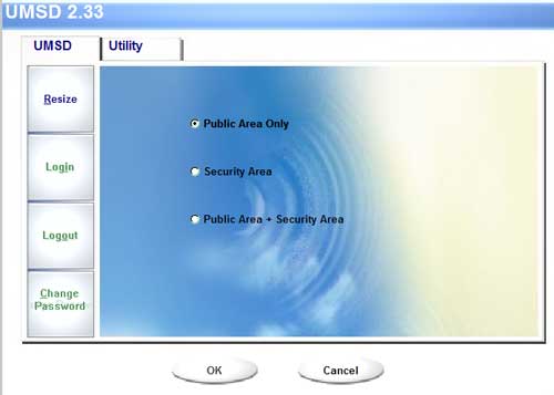 О версии 2.3 я упоминал вкратце в добавлении к предыдущей статье, теперь же рассмотрим новую версию UMSD подробнее. Сразу же видно, что гибкость в разбиении устройства увеличилась: как и раньше мы можем отдать всю емкость под открытую часть или разбить устройство на открытую и закрытую часть, а также добавилась возможность превратить накопитель сразу в два диска.