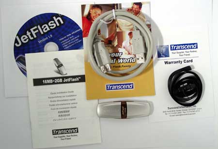 Носить устройство стало удобнее — появилось крепление для шнурка. Последних в комплекте два — для шеи и для запястья. В остальном комплект не изменился — еще есть USB-удлинитель, инструкция, каталог флэш-продукции и CD.