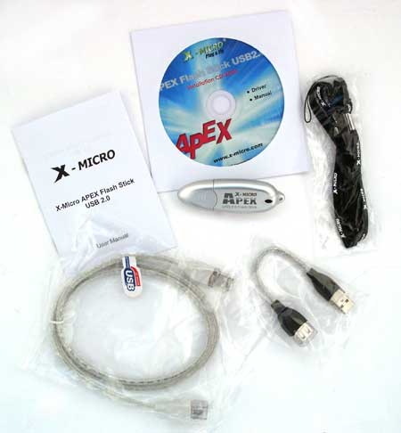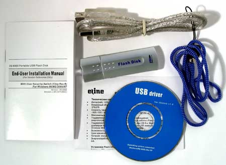 Комплект поставки тоже более чем привычен: USB-удлинитель, краткая инструкция, шнурок-«ошейник» да CD с дополнительным ПО. Ну и сам накопитель емкостью от 32 Мбайт до 2 Гбайт, соответственно.
