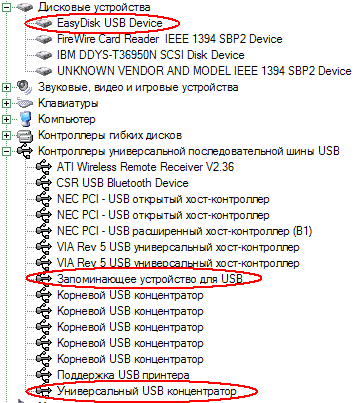 За что люблю EasyDisk, так это за то, что какой бы контроллер не применялся, он все равно в списке устройств представляется одинаково. На этот раз произошла ошибка резидента — выскочивший откуда ни возьмись «Универсальный USB концентратор» заставляет предположить, что перед нами модель на Prolific (как и в случае Kingmax) со всеми вытекающими отсюда последствиями.
