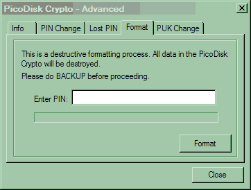 Первым номером сегодняшнего тестирования пойдет классический представитель первого поколения флэшдрайвов, требующий обязательной установки драйверов под любыми версиями Windows. Какой смысл тестировать его сейчас, когда уже есть что выбрать и из более удобных в повседневной жизни накопителей? Тому есть серьезная причина: Picodisk обеспечивает очень хорошую защиту информации. Причем речь идет не о парольной защите, которая уже стала привычной, а о полноценном шифровании с открытым ключом длиной 128 бит (используется алгоритм AES), чего более чем достаточно даже для промышленного применения (вообще говоря, алгоритмы с такой длинной ключа и поныне используются даже спецслужбами, так что остальным тем паче жаловаться не на что).