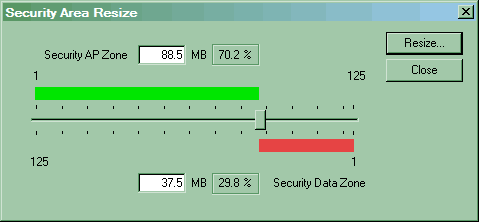 Драйвер будет установлен автоматически вместе с необходимым ПО. Замечу, что над инсталлятором следует поработать: по неизвестной науке причине он устанавливается по пути «C:Program FilesUMSD», независимо от того, на каком диске у вас вообще стоит Windows. Да и вообще — необходимость установки специального драйвера и программного обеспечения все же не очень удобная вещь: флэшдрайвы от M-Systems и Luwen превосходно обходятся без этого. Ладно, продолжим. Запускаем утилиту, выбираем Resize — нам предлагают два варианта: