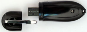 Дизайн строгий и утилитарный, но выглядит красиво: серебристый тонкий корпус без каких-либо утолщений или «уширений». Единственный недостаток — длинноват немного: 95 мм против 80 у MiB или 87 у EasyDisk. Светодиод расположен внутри корпуса, однако его мощность позволяет просветить пластмассу насквозь, так что неудобств сие не составляет. Есть ползунок защиты от записи и пластмассовая скобка для крепления шнурка, а вот отверстия для ношения накопителя на брелке с ключами нет (да и не нужно — для того, чтобы такой способ транспортировки был удобен, накопитель следовало бы делать более коротким).
