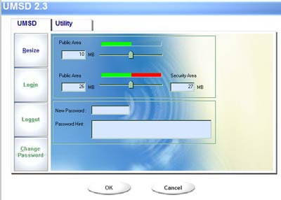 Изучение CD показало, что содержимое компакта практически полностью идентично комплекту ПО, поставляемого с MiB. Программы и выглядят одинаково, и работают точно так же (в случае утилиты создания загрузочного флэшдрайва — не работают точно так же :)). Единственная деталь — использование парольной защиты не требует установки драйверов (в отличие от Transcend JetFlash и PQI MiB), что можно только приветствовать, поскольку, как я покажу во второй части статьи, использование UMSD значительно снижает скорость записи. Я надеялся, что исправят и еще один неприятный баг программы разбиения накопителя на защищенную и открытую области, однако он остался на месте: как и раньше, производя данную операцию, придется отключить от компьютера все остальные устройства на сменных носителях, подключаемые к шинам USB или FireWire.