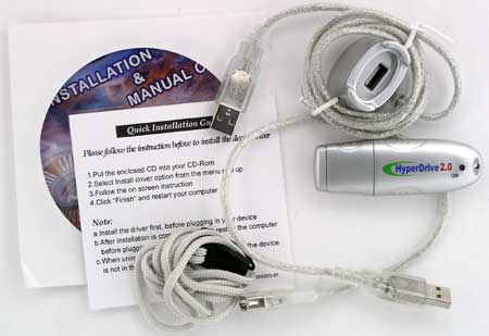 А еще с этим, давно знакомым накопителем, Hyper Drive 2.0 роднит и комплект поставки: сам накопитель, CD с ПО и документацией (по всей линейке — и для USB 1.1, и для 2.0), шнурок для его ношения на шее, короткий USB-кабель и док с уже достаточно длинным кабелем.