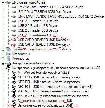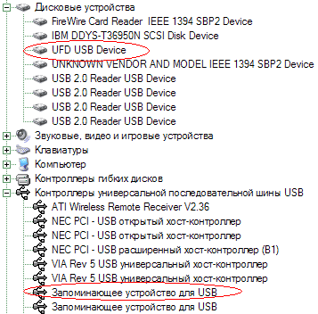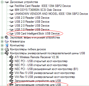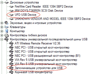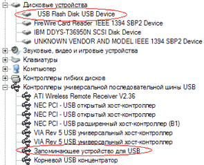 Подключение устройства к компьютеру, работающему с более современной версией Windows вообще осуществляется элементарно — мы сразу же получаем абстрактное устройство хранения информации с интерфейсом USB в списке.