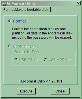 Есть утилита M-Format. Может просто отформатировать накопитель, а может сделать его загрузочным. Последнего мне под ХР не предложили, в руководстве объяснений по этому поводу никаких, пропустим.
