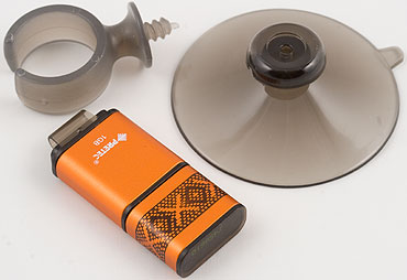 Дизайн, как я уже сказал, ближе к классике, нежели у Tiny Standard и Luxury — с защитным колпачком. Из интересных особенностей разве что фиксация колпачка на «задней» части флэшки в те моменты времени, когда он не нужен. Правда использование это возможности удобно лишь тогда, когда мы носим накопитель просто в кармане (представительницы лучшей части человечества — в сумочке), поскольку петля для крепления разных колечек-шнурочков расположена там же сзади, так что транспортировочные аксессуары могут и помешать пристегнуть колпачок на парковочную позицию. Видимо потому их и в комплекте нет ;) Зато есть держатель на присоске, позволяющий красиво (или не очень) располагать устройство на рабочем столе — чтобы не потерялось среди бумаг.
