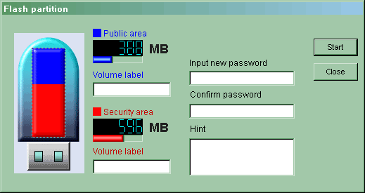Первая (подписанная как «Flash Partition») позволяет управлять разделами, коих может быть два: открытый и защищенный паролем. При каждом форматировании устройства, кстати, помещает сервисную утилиту на открытый раздел.