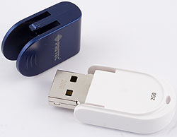 Официально емкость, как и в предыдущем случае, составляет от 128 МБ до 8 ГБ, но мы и в этот раз тестировали флэшдрайв на 2 ГБ. О скоростных характеристиках ничего не сказано. По поводу моделей на 4 и 8 ГБ вскользь упоминается, что они поддерживают передачу данных на скоростях до 20 МБ/с, но раз уж вскользь, значит, наверняка, речь идет о чтении информации, так что ничего такого вдохновляющего ожидать не стоит. А младшие модели, судя по всему, должны быть еще медленнее. Но это мы проверим чуть позднее.