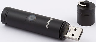 Автономное использование не ограничивается только возможностью иногда подпитать своего портативного цифрового компаньона — есть еще третья часть, в собранном состоянии пристыковывающаяся к основной и от нее питающаяся. В комплект Mobile Trio входят две сменных насадки — лазерная указка и фонарик. В случае Mobile Duo между ними нужно выбирать при покупке: модели с индексом MDUXXX-L (где ХХХ — емкость флэш-памяти) комплектуются лазерной указкой, а если индекс оканчивается на «Е», значит, в комплект входит светодиодный фонарик. Оба «пристыковочных» модуля выглядят примерно одинаково: небольшой цилиндрик с разъемом USB mini-B на одном торце (универсальность разъема позволяет использовать данный аксессуар не только совместно с данной моделью накопителя), «рабочем элементом» на другом.
