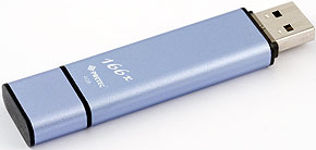 А это уже новая и очень оригинальная идея (точнее, реализация таковой)! Накопитель сам по себе достаточно большой — целиком представляет собой металлический цилиндр длиной 85 и диаметром 18 миллиметров (измерено собственноручно, ввиду отсутствия официальной информации), конструктивно состоящий из трех частей.