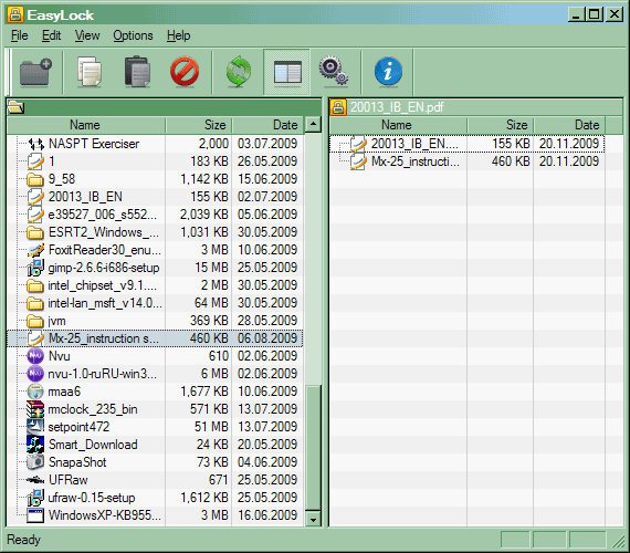 Интерфейс простой и незамысловатый — похожий на многие файловые менеджеры. В левой части просматриваем файлы, хранимые на накопителях, подключенных к компьютеру, правая же жестко связана со специальной скрытой папкой на флэшке. В ней можно создавать подпапки, а все операции по шифрованию и дешифровке выполняются простым перетаскиванием файлов/папок в правую или левую часть окна соответственно. В общем, достаточно просто и удобно, но, вместе с тем, надежно — ключи, длиной 256 бит, за разумное время не взламываются :)