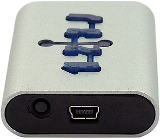 Перед нами довольно-таки громоздкий (если сравнивать с другими флэшками, а не с ВЖД, конечно) алюминиевый девайс, размерами примерно 54 х 41 х 14 мм, для подключения к компьютеру использующий кабель — на корпусе расположен только разъем типа mini-B. Такое решение имеет очевидный минус — нужен кабель, так что от привычной схемы «воткнул и работай» придется отказаться. Но есть и не столь очевидные, но весьма весомые плюсы: сломать устройство крайне тяжело. Внешняя оболочка по большей части состоит из алюминия, толщиной примерно 1 мм — пластик проглядывает только на одном из торцов. Никаких выступающих частей нет, корпус весьма обтекаемый — сломать накопитель крайне сложно.
