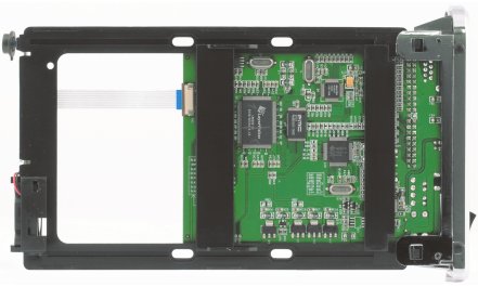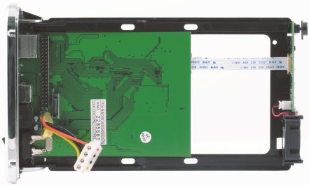 После сборки можно использовать накопитель как обычный внешний USB-накопитель. С использованным нами диском Hitachi HDT725025VLA380 (7200 RPM, SATA, 250 ГБ, буфер 8 МБ) максимальная скорость работы в этом режиме составила около 25 МБ/с на чтение, и 30 МБ/с на запись. Для USB-накопителей сегодня это средние показатели, но для подобного устройства «два-в-одном» можно считать их хорошими. А по сравнению с версией на Ximeta, здесь мы наблюдаем полуторакратный рост скорости.