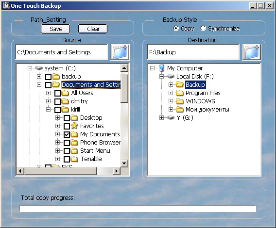 Кнопка для автоматического резервного копирования, присутствующая на лицевой панели устройства, может использоваться только при работе через USB и только с комплектной программой. Мы уже встречали ее в других устройствах от Floston, например, у StarBox Quantum. Программа очень простая и позволяет назначить кнопке единственное задание — копирование папки на внешний диск или синхронизацию папок. Второй вариант может быть интересен в случае использования накопителя на нескольких рабочих компьютерах.