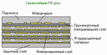 Из него мы видим, что FM диск прозрачный, и вы можете спросить: а где же отражающий слой, как на СD и DVD дисках? Дело в том, что данная технология не нуждается в присутствии отражающего слоя. Рассмотрим FM диск более детально.