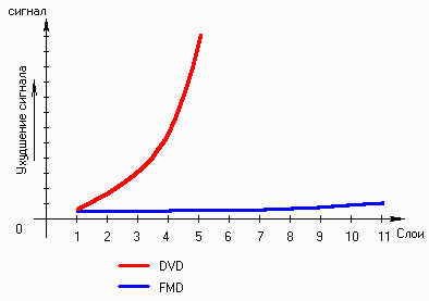 По заявлению разработчиков FMD-ROM, даже при количестве слоев больше сотни не будет происходить сильного искажения полезного сигнала, так как все слои диска прозрачны и однородны.