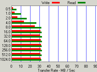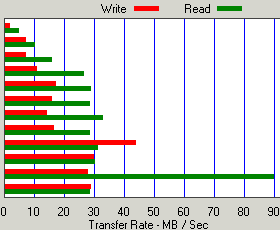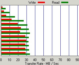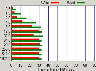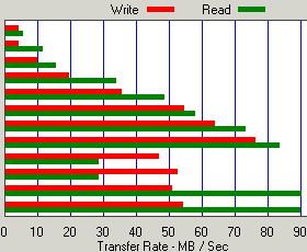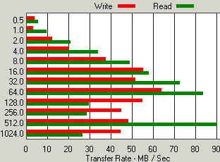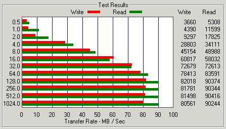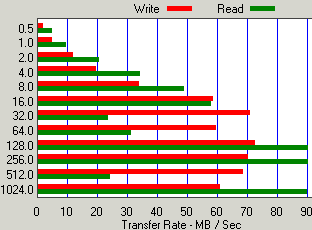 Честно говоря, такого «безобразия» и разнобоя показаний для файлов от 1 до 8 Мбайт, какое наблюдается здесь, я очень давно не видывал. Порой даже сложно выявить какие-то общие закономерности (желающие могут попытаться сделать это самостоятельно). И лишь для файлов крупнее 16 Мбайт можно видеть четкую и закономерную картину. Впрочем, я не исключаю, что такие странные порой результаты в этом тесте можно отнести на счет «слишком продвинутых» алгоритмов кэширования, которые просто сбивают тест ATTO с толку. :)
