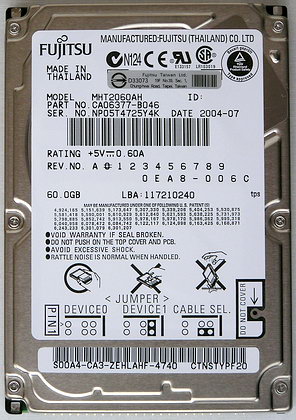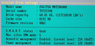В нынешних испытаниях серию пятитысячников Fujitsu MHT20xxAH на 40-гигабайтных пластинах представляет средняя 60-гигабайтная модель MHT2060AH.