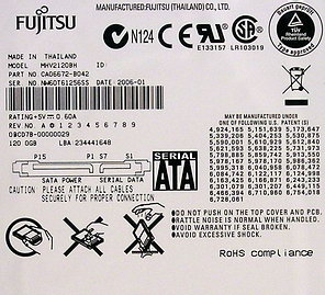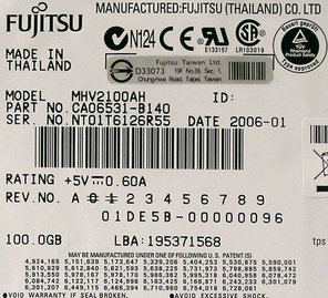 Маркировка испытанных нами накопителей Fujitsu показана на следующих фотографиях.