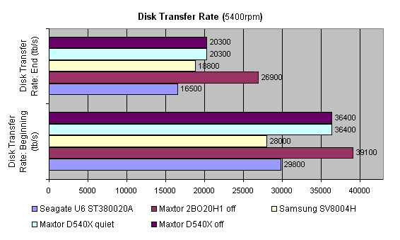 Очень и очень неплохо! Лидер — представитель линейки Maxtor 541DX — диск с плотностью записи не 40GB на пластину, а 20GB на сторону (используется только одна головка), поэтому можно считать, что появился новый лидер среди дисков с плотностью записи 40GB на пластину.