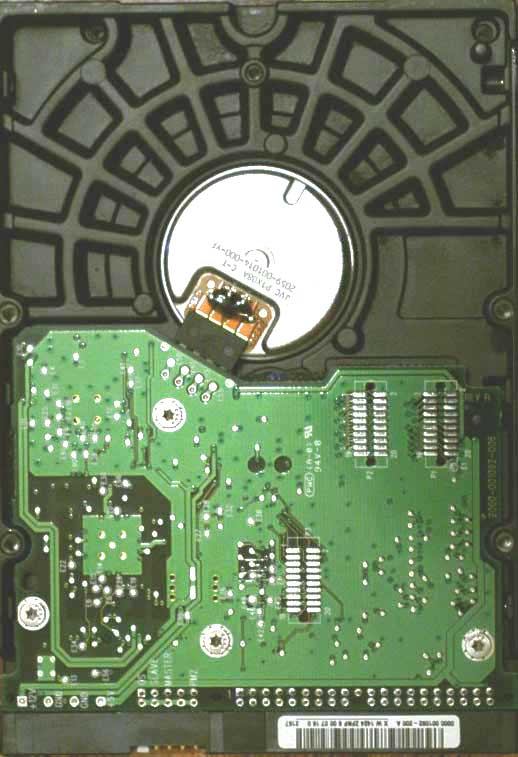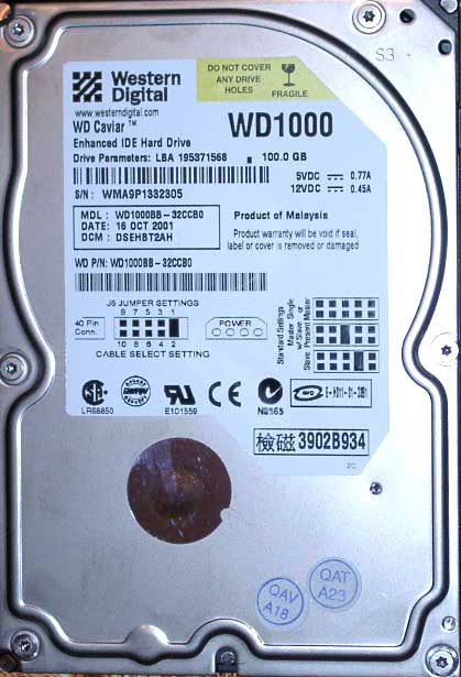 WD Caviar 1000BB — самый «большой» диск, побывавший у нас на тестах. Компания Western Digital не перестает радовать нестандартными плотностями записи. Действительно, при плотности записи 40GB на пластину диск объемом 100 гигабайт должен иметь 3 пластины и 5 головок. А что мы видим? Да, пластины три, но головок шесть. Итого получаем 33 и три в периоде гигабайта на пластину. Оригинально. Хотя конфигурация с двумя головками на каждую пластину мне лично кажется предпочтительной. Видимо, инженеры Western Digital думают так же, поскольку у диска Caviar 1200BB емкостью 120GB, который до нас пока не доехал, конфигурация такая же, а плотность записи, соответственно, 40GB на пластину. Еще один представитель дисков от WD, побывавший у нас на тестах — WD Caviar 800BB — нельзя назвать новинкой, но протестировате его надо было, что мы и сделали. Диск имеет тоже три пластины и шесть головок, плотность записи — 26 и 6 в периоде гигабайт на пластину.