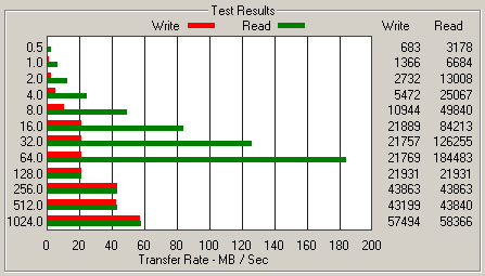 По измеренному среднему времени доступа при чтении диск Hitachi Ultrastar 10K300 оказался на одном уровне с Seagate Cheetah 10K.7, уступив только накопителю Maxtor и обогнав WD Raptor. Интересно здесь другое — диск HP/Compaq BD14685A26 показал заметно (на 10%) худшее время доступа, чем его визави Cheetah 10K.6. Подобную картину мы уже наблюдали, когда Cheetah 10K.7 использовал режим фиксированной сегментации (Performance Mode = On) вместо дефолтной адаптивной, но в данном-то случае (если верить утилите Seatools Enterprise) диск HP/Compaq BD14685A26 работал как раз с адаптивной сегментацией. Так что можно сделать вывод о разнице как минимум в нюансах кэширования между firmware для диска HP и родным firmware Cheetah 10K.6, из-за чего измеренное под Windows время поиска у диска HP/Compaq BD14685A26 заметно (на 0,7 мс) возрастает.
