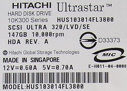 Стоит отметить, что по внешнему виду «десятитысячник» Hitachi существенно отличается от последнего «пятнадцатитысячника» этого производителя Ultrastar 15K147. В отличие, например, от продуктов Maxtor, где SCSI-накопители с разной скоростью вращения последних серий были весьма похожи на вид.