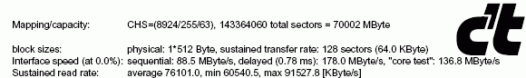 Core Test дает лучшие показатели на ATA-дисках (и до сих пор приводился мной в статьях), а «delayed»-тест показывает, как правило, чуть меньшую скорость для ATA-дисков и контроллеров, но в случае SCSI-дисков, наоборот, часто имеет преимущество и показывает более высокую скорость bus transfer (interface speed).