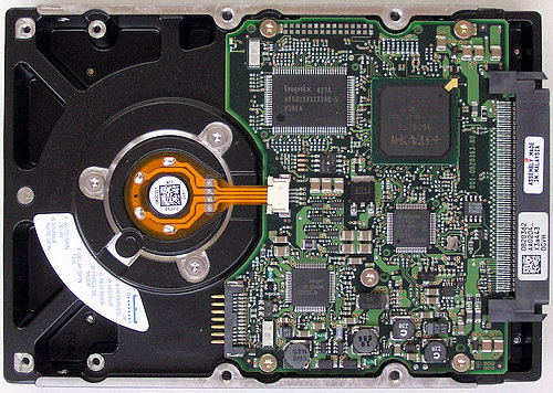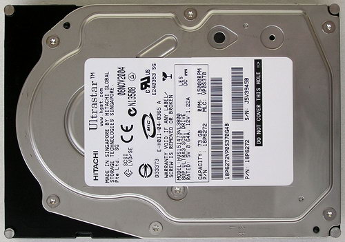 Максимальная плотность записи у новых «пятнадцатитысячников» Hitachi составляет 61,7 Гбит на кв. дюйм (у предшественника 15K73 было 31.2). Интересно, что наибольшая линейная плотность записи вдоль дорожек у новых SCSI-дисков Hitachi оказалась примерно на 12% меньше, чем у последний SATA-дисков этой компании (686 против 767 Кбит на дюйм), а плотность треков вдоль радиуса — даже на 33% меньше (90 против 120 тыс. на дюйм). Это — плата за вдвое более высокую скорость вращения и надежность. Впрочем, данная максимальная линейная плотность записи вдоль и «поперек» дорожек с хорошей точностью соответствует параметрам 80-гигабайтных пластин ATA-дисков Hitachi — 689 Кбит на дюйм и 90/93.5 тыс. на дюйм соответственно (при 62 Гбит/кв. дюйм общей макс. плотности). И поскольку Ultrastar 15K147 разрабатывался и начал производиться еще в пору гегемонии 80-гигабайтных пластин для трехдюймовых ATA-дисков (примерно одновременно с Kurofune 7K400), то очевидно, что на самом-то деле никаких «жертв» плотностью записи в угоду скорости вращения не приносилось — для Ultrastar 15K147 использовали самую высшую плотность на тот момент! Впрочем, несмотря на это, устоявшаяся скорость линейного чтения-записи у этих дисков (если верить спецификациям) оказалась несколько меньше, чем у аналогичных дисков Maxtor и Seagate (хотя и на 18% больше, чем у предшественника). Кстати, как и в 15K73 (и дисках линейки Travelstar), здесь Hitachi использует стеклянные, а не алюминиевые пластины (в Deskstar используются как раз алюминиевые).