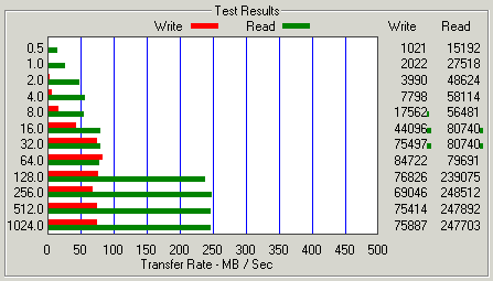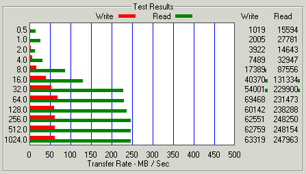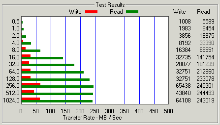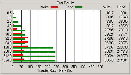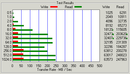 По результатам этого теста налицо существенное преимущество диска Maxtor Atlas 15K II — эффективно кэшируются на чтение файлы объемом до 4 Мбайт включительно (тогда как у Seagate Cheetah 15K.4 — лишь до 1 Мбайт), а кроме того, у Maxtor лучше чтение блоками малого размера.