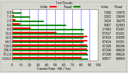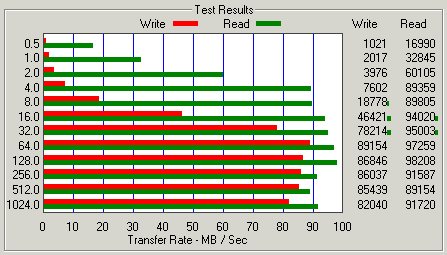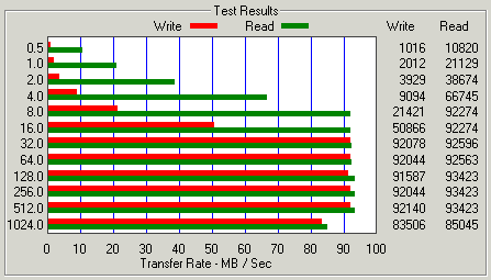 В данном случае существенных различий между дисками Maxtor и Seagate мы не видим — макстор кэширует запись чуть эффективнее, но это можно списать и на разницу в физической скорости поиска.