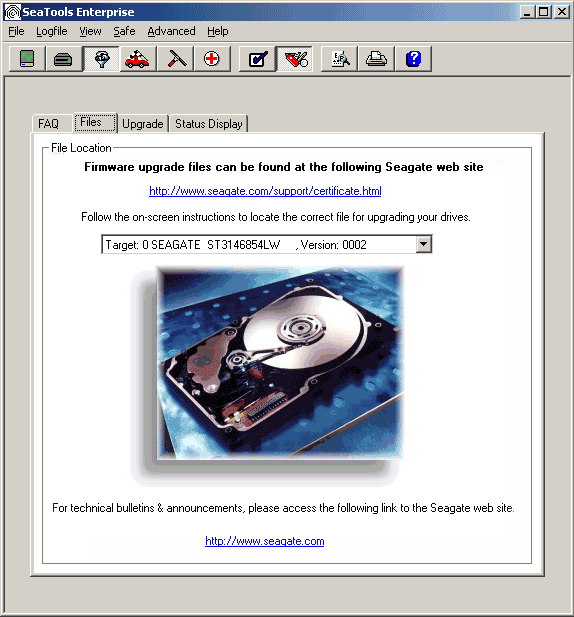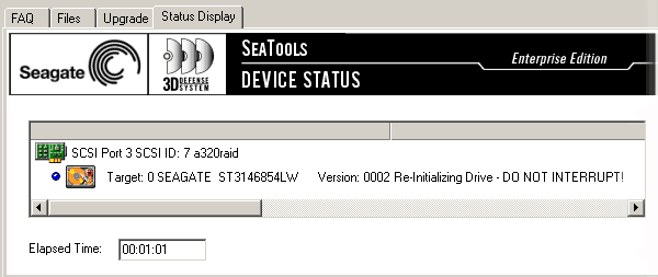 Тут любопытно будет отметить, что если для обновления микропрограммы винчестера Maxtor требуется специальная закрытая для широкого доступа утилитка под командную строку, то у Seagate «прошивалка» свободно доступна на сайте производителя и встроена в многофункциональную и удобную Windows-программу Seatools (в данном случае — Enterprise Edition), позволяющую любому неподготовленному пользователю обновить firmware, даже не обращаясь к справке (если, конечно, соответствующая версия firmware окажется в его распоряжении):